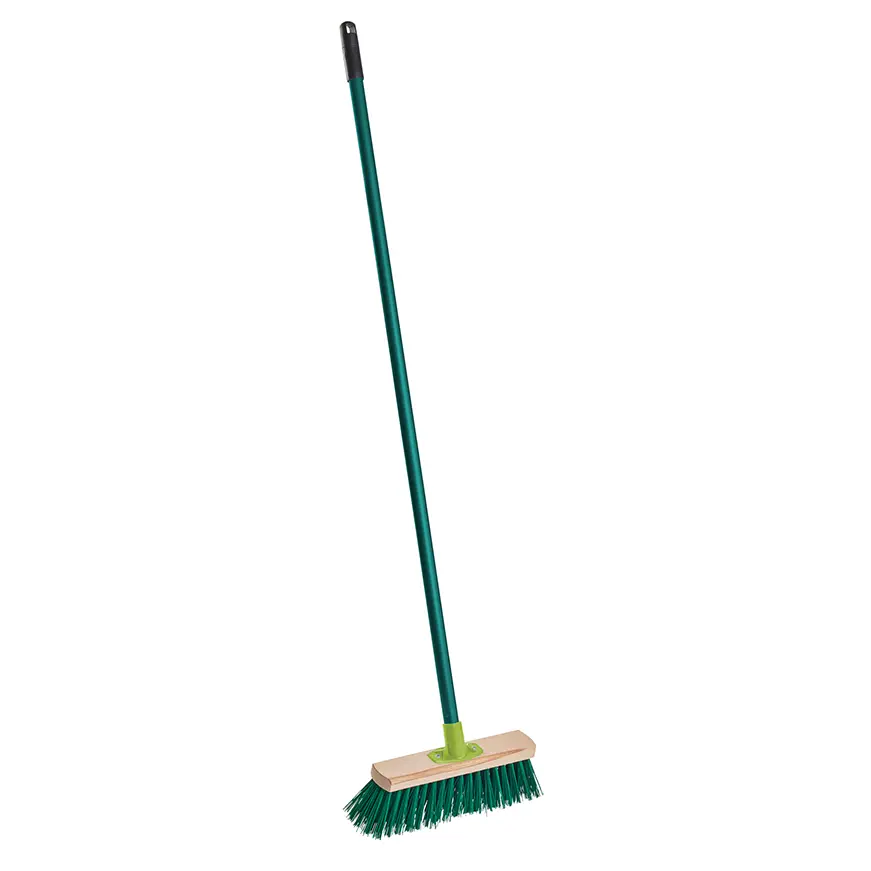Plastic coated steel broom with beech wood head and PVC bristles. This Gardman Stiff Broom is ideal for sweeping leaves, dirt and debris outdoors in gardens and on patios. A great addition to your garden care tools, and it is sturdy and gets the job done!