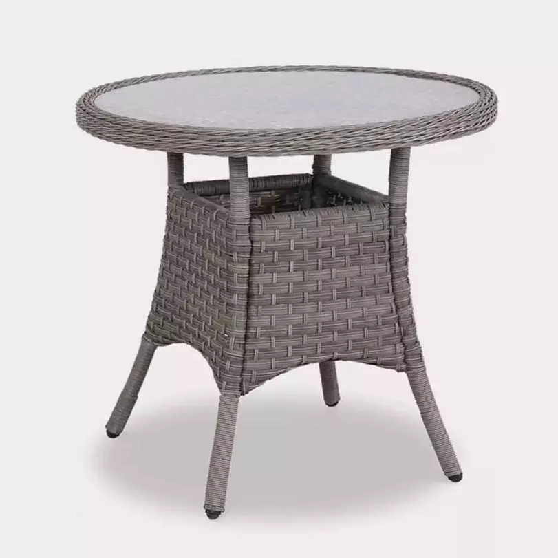 The elegant round bistro table is ideal if space is of a premium. The Charlbury 70cm Bistro table is made with a strong, yet lightweight aluminium frame, which is beautifully covered with a mix of flat and half round synthetic rattan, to give it a unique style. The hardened glass tabletop provides a smooth finish and is securely held in place with the thick round wicker. With very little maintenance required the Charlbury table is suitable to be left outdoors all year round, as the wicker is waterproof, and UV protected.