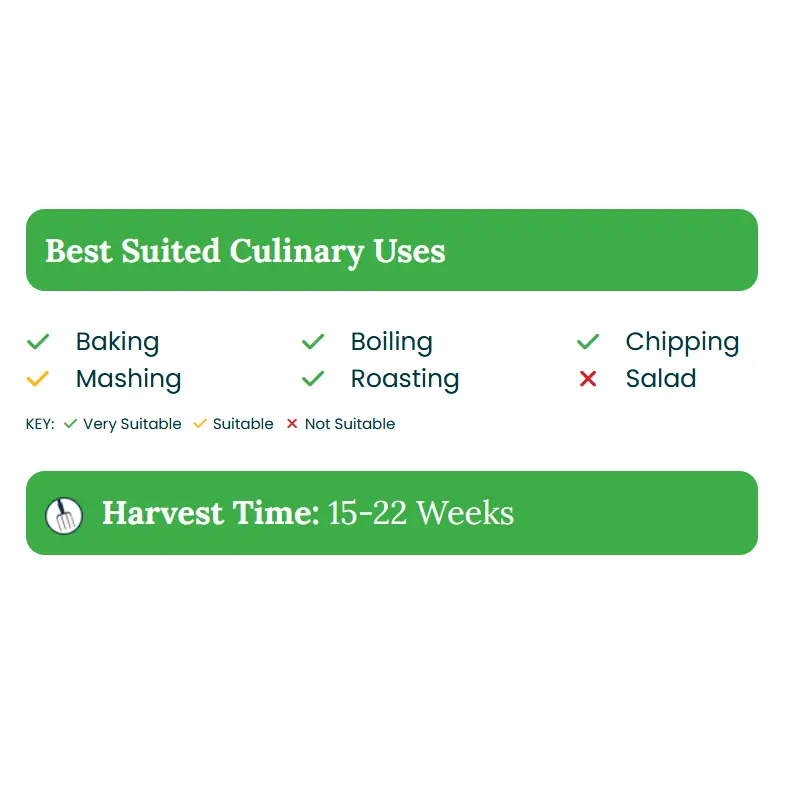 Picasso tubers are round to oval in shape with white smooth skins and pink eyes. This is now a popular variety for allotment growers due to its high disease resistance. With Cara as one of its parents it has a great range of uses in the kitchen. A huge yielder and good storing variety.