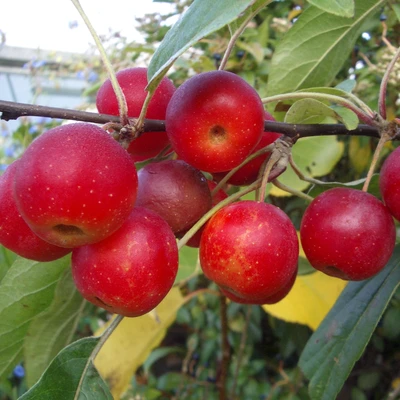 This small, compact deciduous tree has large red crab apples ideal for jellies etc. Fruits stay on the tree well into winter.