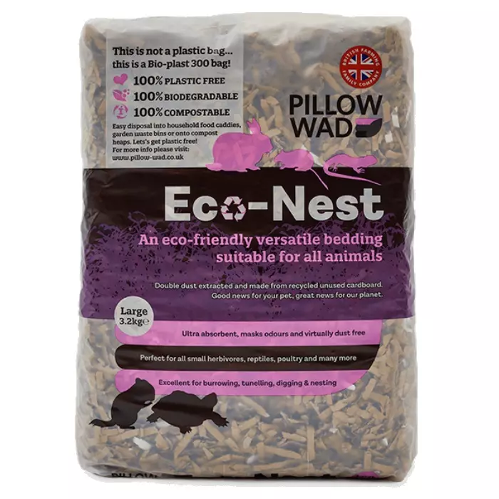 Cosiness with a conscience: made from recycled virgin cardboard this absorbent, biodegradable bedding is virtually dust-free. Ideal for your furry friends that burrow and it masks little niffs and odours too. Good news for your pet, great news for our planet.