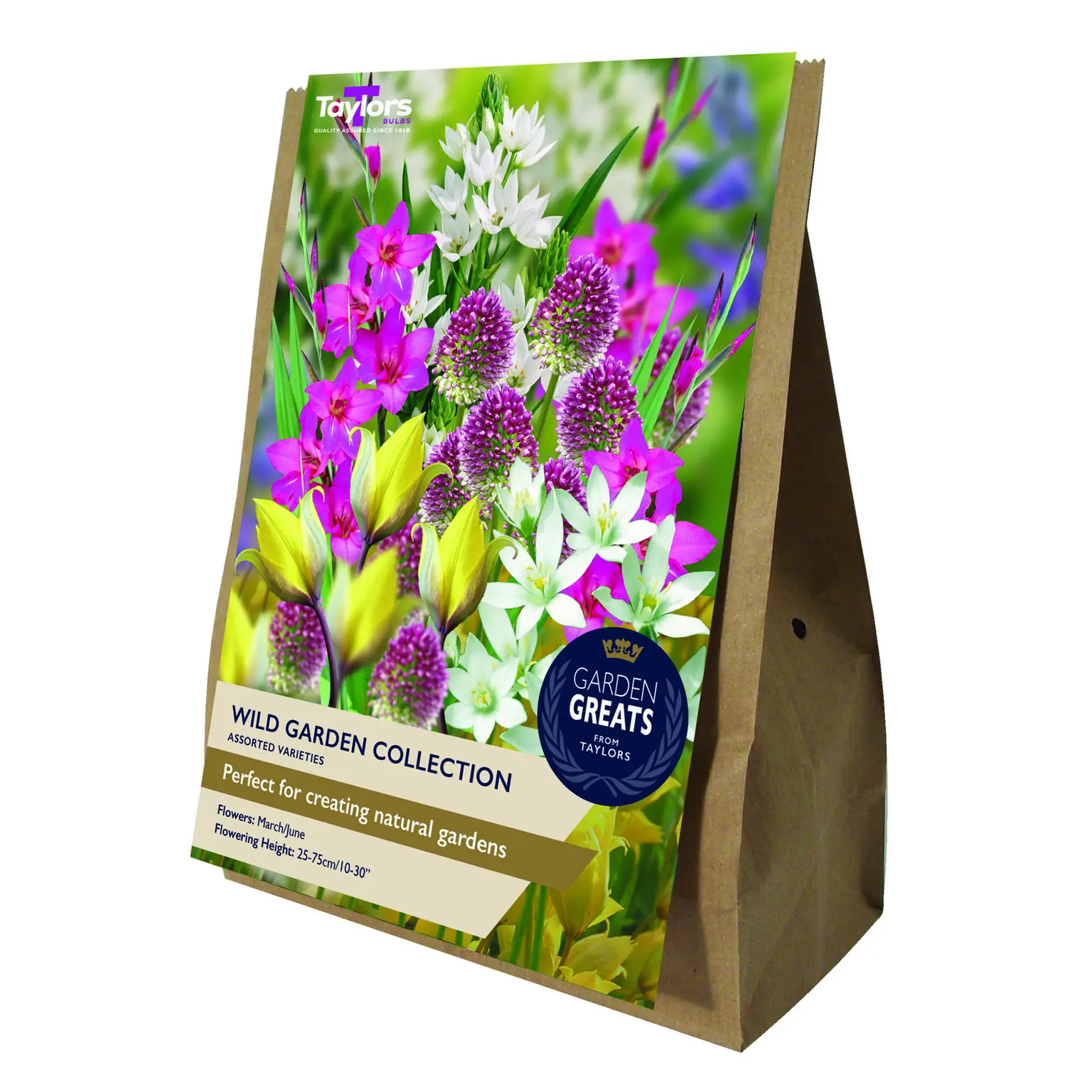 A themed collection for creating a wild garden. Contains Ornithagalum, Tulip sylvestris, Allium sphaerocephalon and Gladiolus byzantinus.