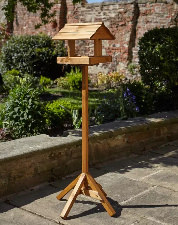 A freestanding bird table that can be placed anywhere in your garden, the Retreat has open sides allowing for larger birds to use it, and a wooden roof to keep the rain off.