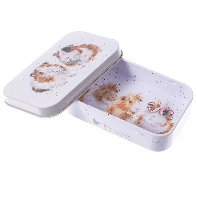 Perfect for storing trinkets, pills or anything small, this mini tin features a lovely guinea pig design. Illustrated on every surface (even inside!), these tins measure 95mm x 60mm x 20mm